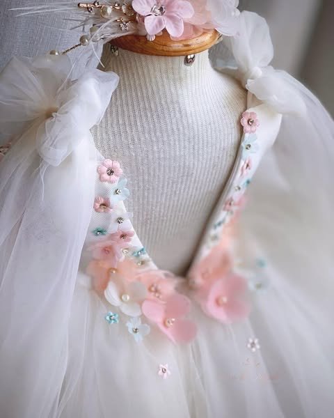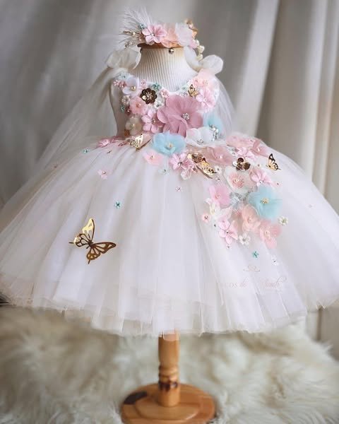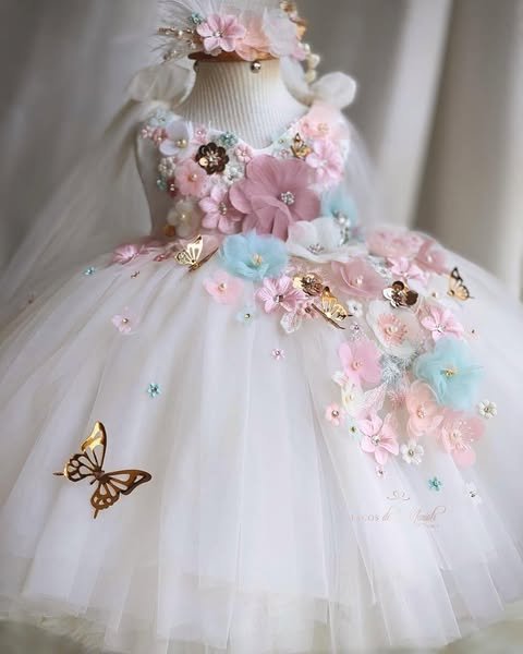 - Hand Embellishment: This is a significant part of the work. Each dress would require extensive hand-stitching to securely attach hundreds of individual flowers, butterflies, and other decorative elements, ensuring they are aesthetically placed and durable.
