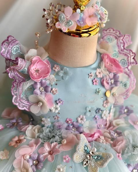 Work – 3d butterfly and flower lace sleeve